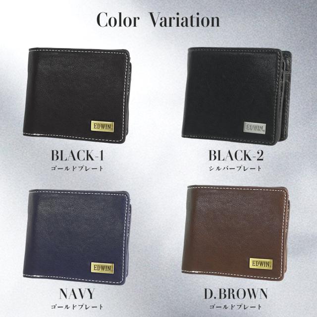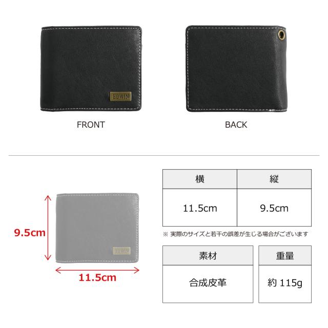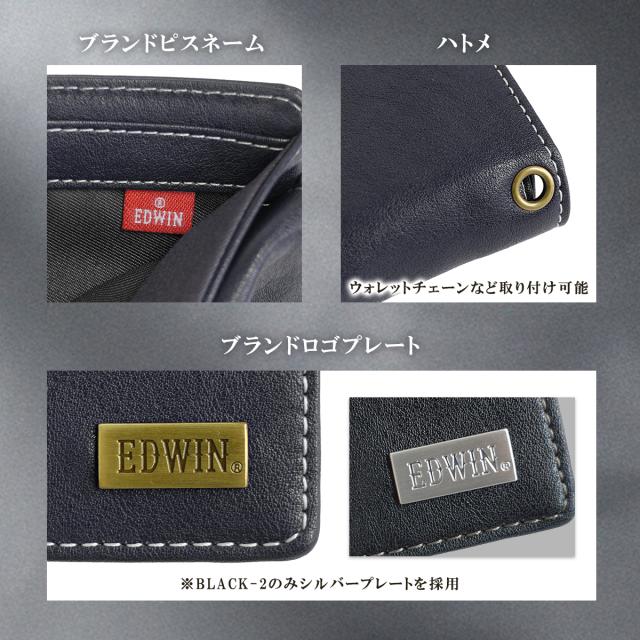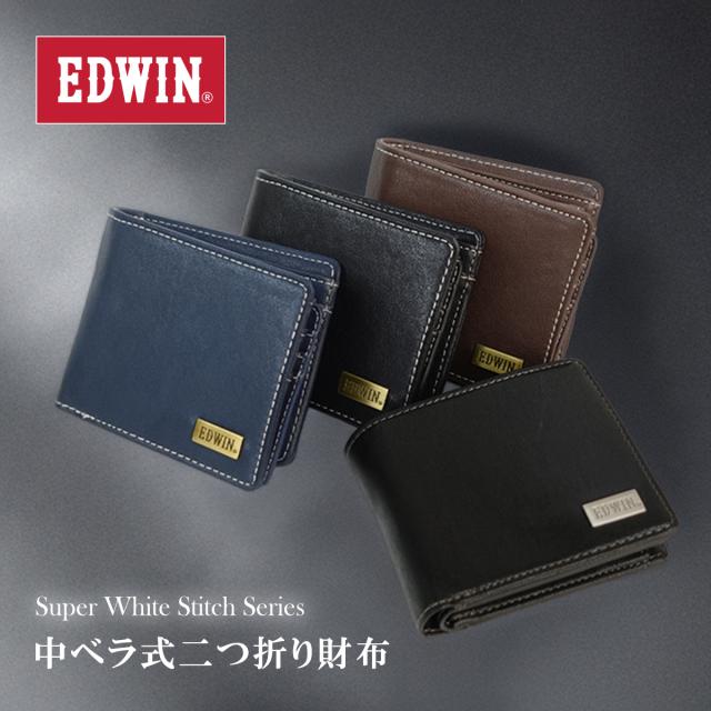 エドウイン EDWIN 22269323 財布 サイフ 二つ折り財布 メンズ レディース 合成皮革 カード収納 プレート ホワイトステッチ プレゼント ブラック ネイビー ダークブラウン