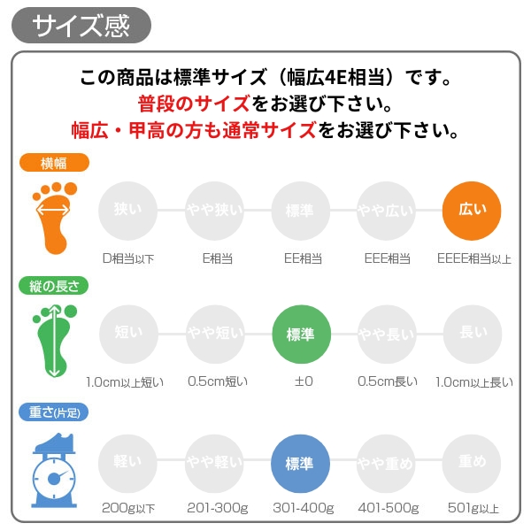 ワイズ(横幅):ゆったり幅広4E(EEEE)相当
