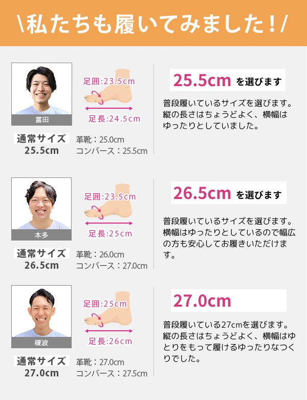 取り扱いサイズ:25cm 25.5cm 26cm 26.5cm 27cm 28cm