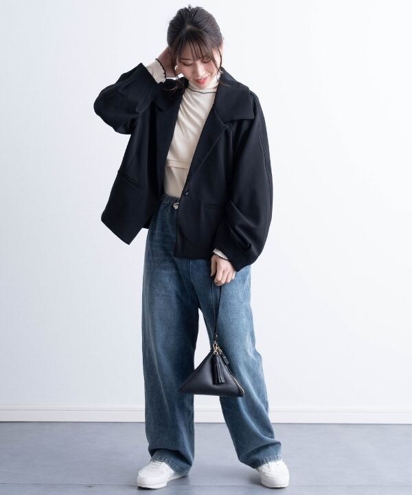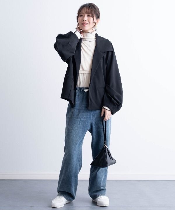 たっぷり幅でお腹まわりはゆったり、脚はルーズシルエットで今っぽく