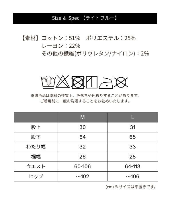 ■素材:コットン51% ポリエステル25% レーヨン22% その他の繊維(ポリウレタン/ナイロン)2%