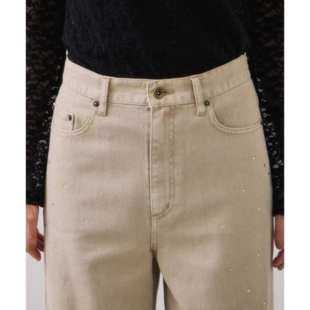 ラインストーンを脇線に沿って大小ランダムに3種類の大きさを付けています。