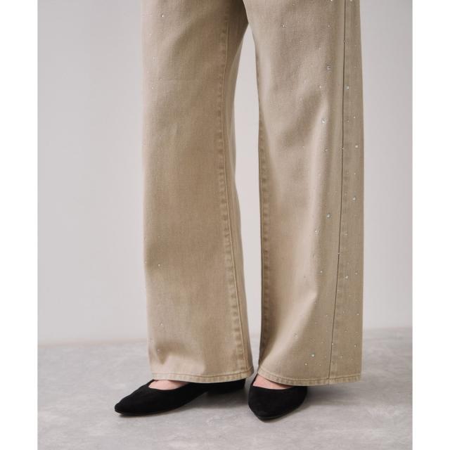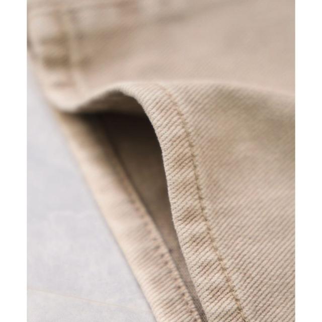 全面ではなく部分的に付け、デザインをUPデートしています。脇線を前振りにして正面から見たときにメリハリが出るようようにアクセントを付けました。カジュアルダウンできるストレートシルエットで、ストレスなく履けるのも嬉しいポイント。