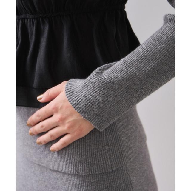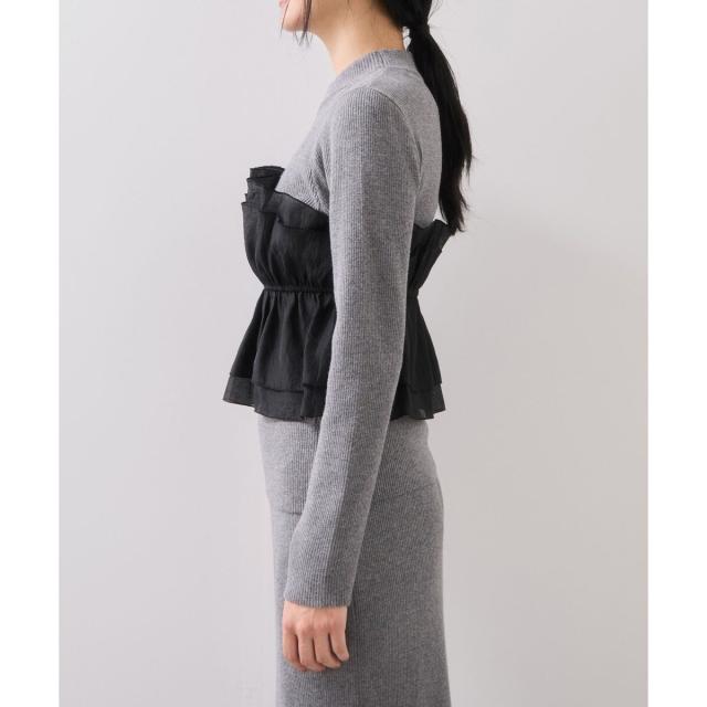 ペプラムシルエットのビスチェが、ジャケットやカーディガンのインにあわせるだけで着映えするハイゲージニットで、オンオフ着回しの効くアイテムです。
