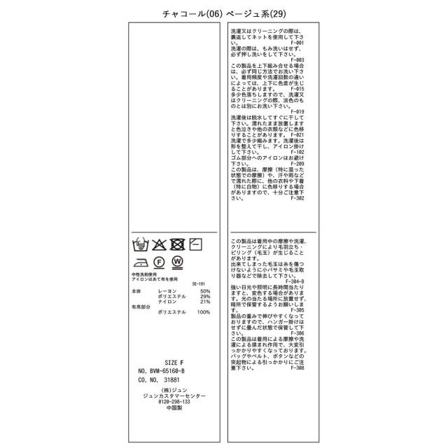 チャコール(06)ベージュ系(29):(本体) レーヨン 50% ポリエステル 29% ナイロン 21% (布帛部分) ポリエステル 100%