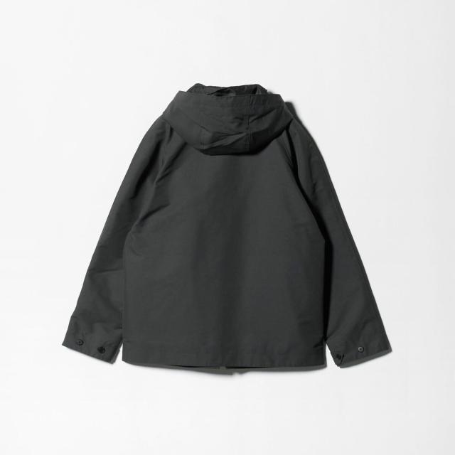 袖口には調整可能なタブを配し、フード周りはスピンドル仕様で機能性も抜かりなし。