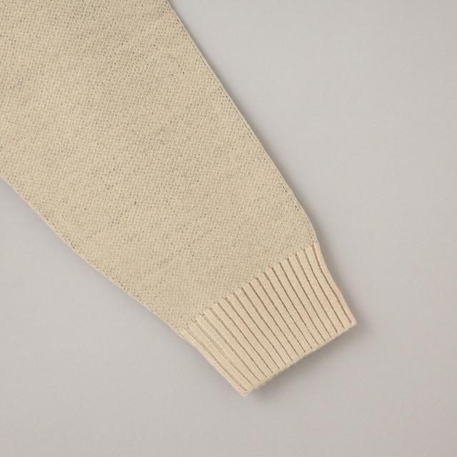 12ゲージの程良い厚みのニットは、さらっとした着心地で春秋の季節の変わり目にも頼れる1枚。