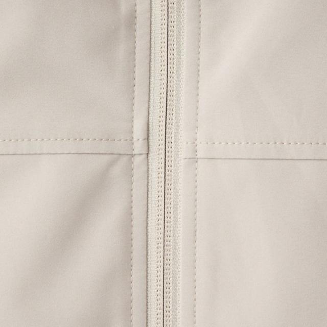 スタンドフード仕様で首元までしっかり防風し、ダブルスライダーで裾まわりの調整も自在。