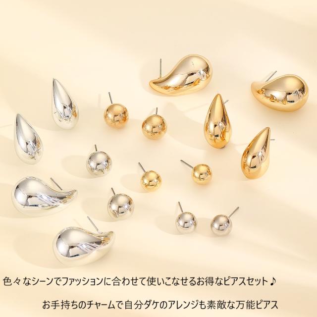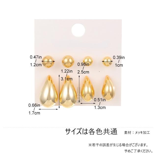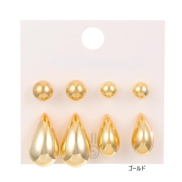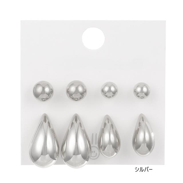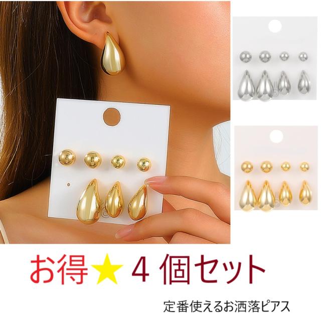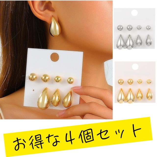 ぷっくり雫型と丸玉のお得な4点セットのピアス
