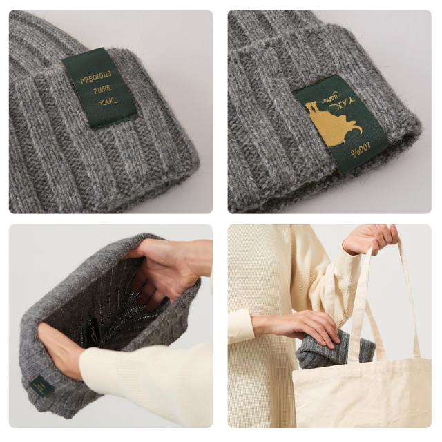 カシミヤ並みの柔らかさをもったヤク毛を使用したニット帽。