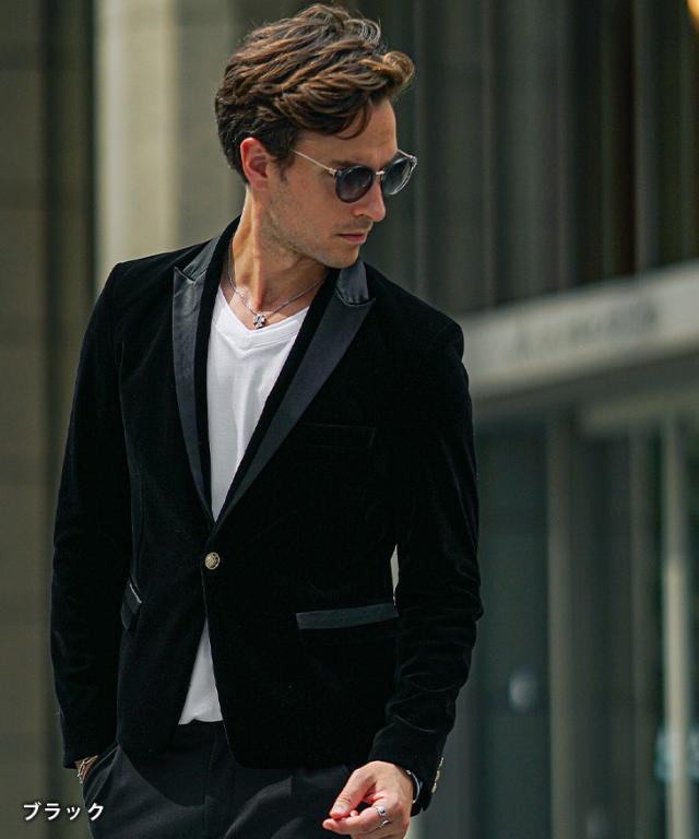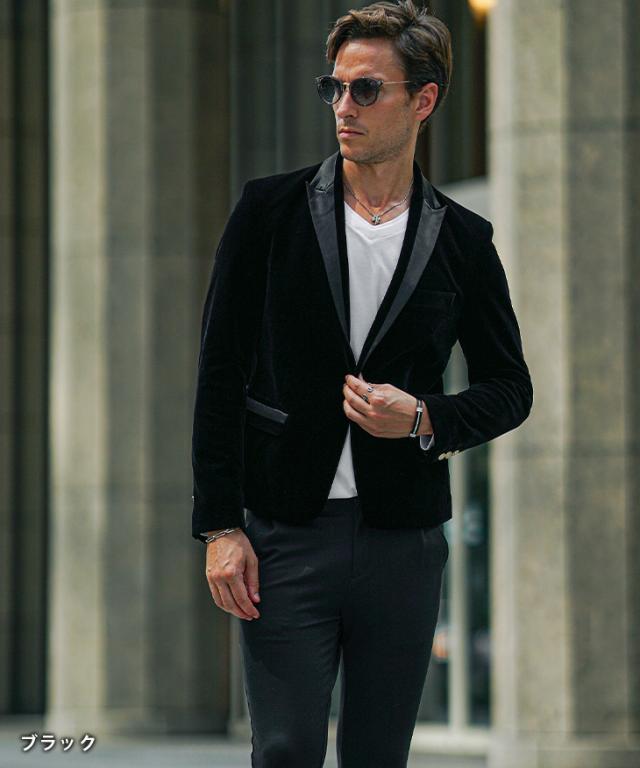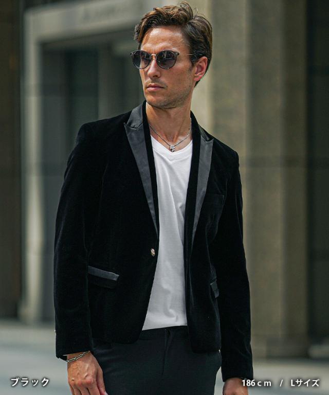 テーラードジャケット メンズ ベロア ジャケット メンズ 新作 1ボタンテーラードジャケット ブラック テーラード ジャケット メンズ シングルボタン Black by VANQUISH ブラックバイヴァンキッシュ