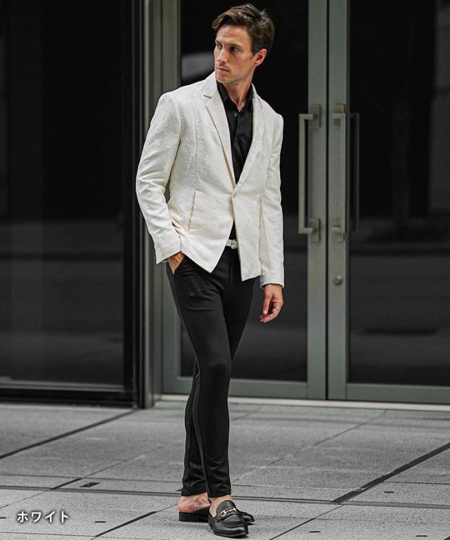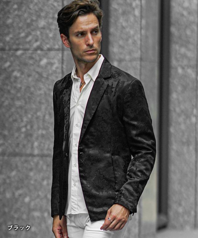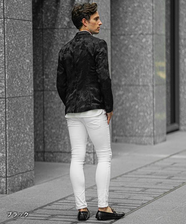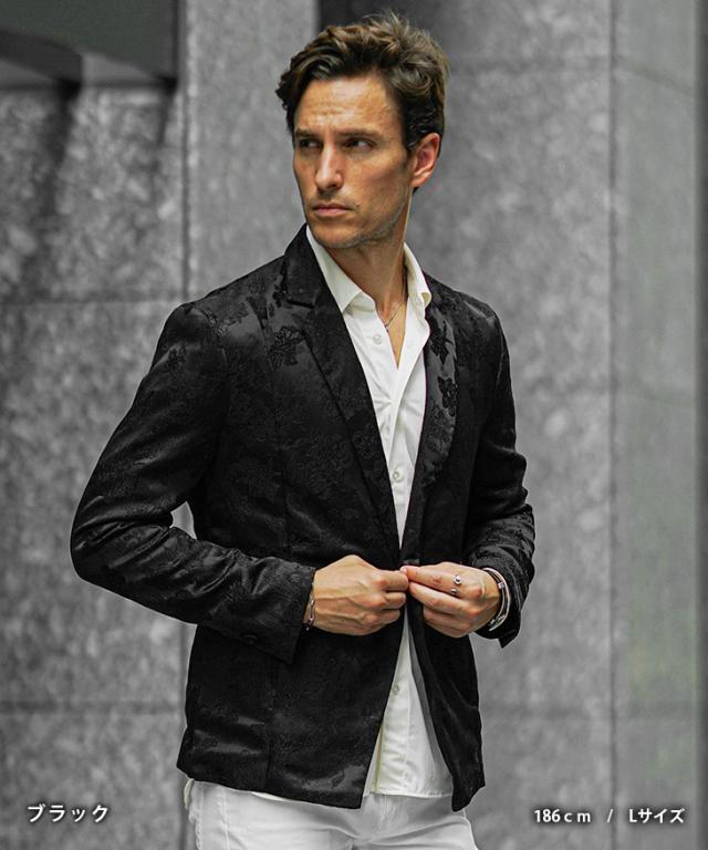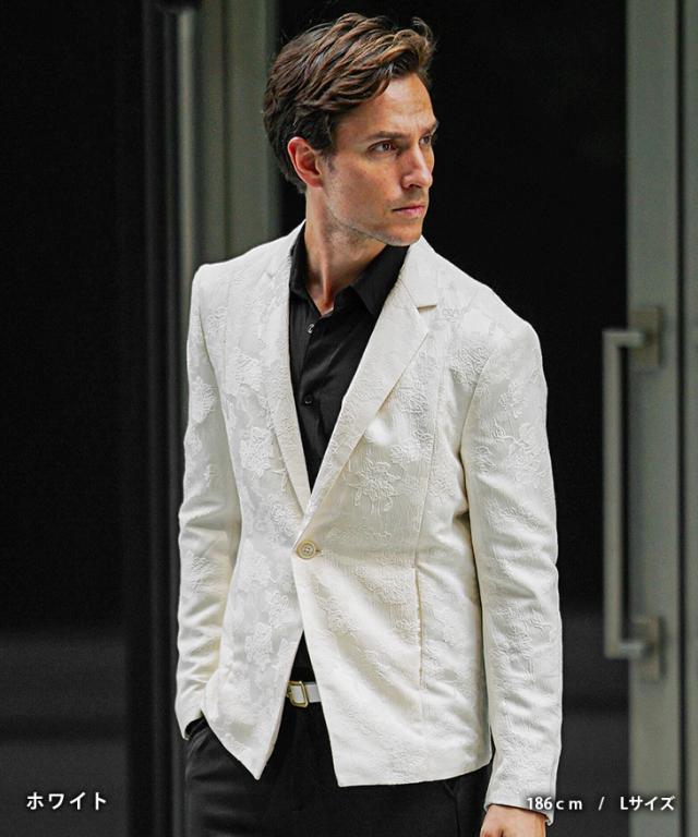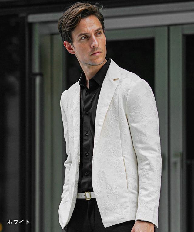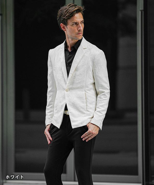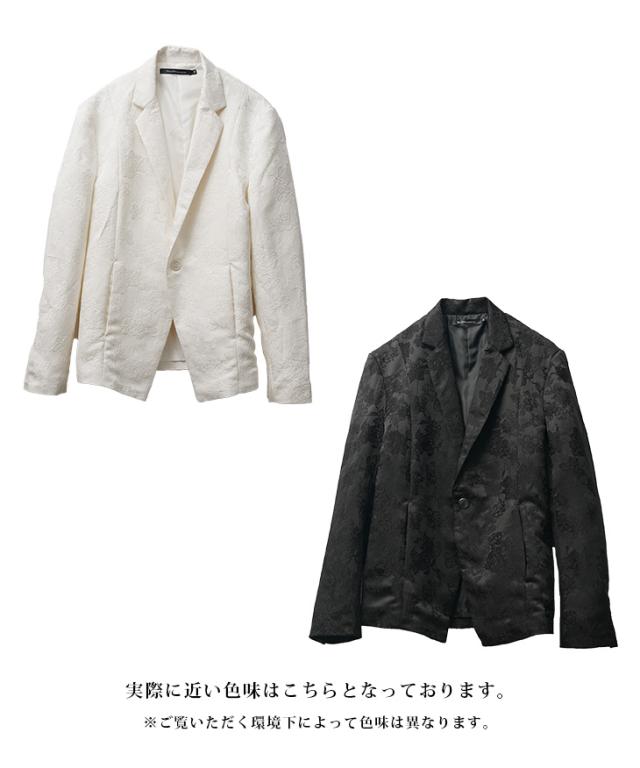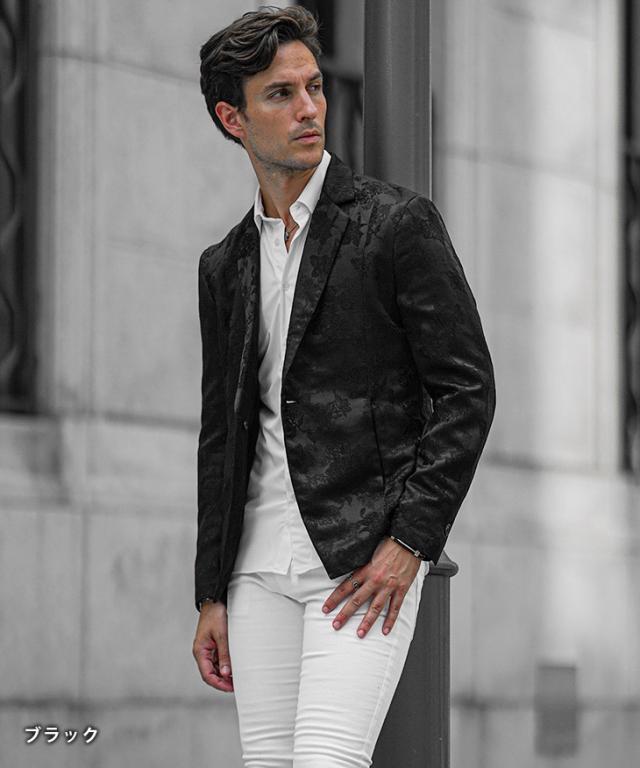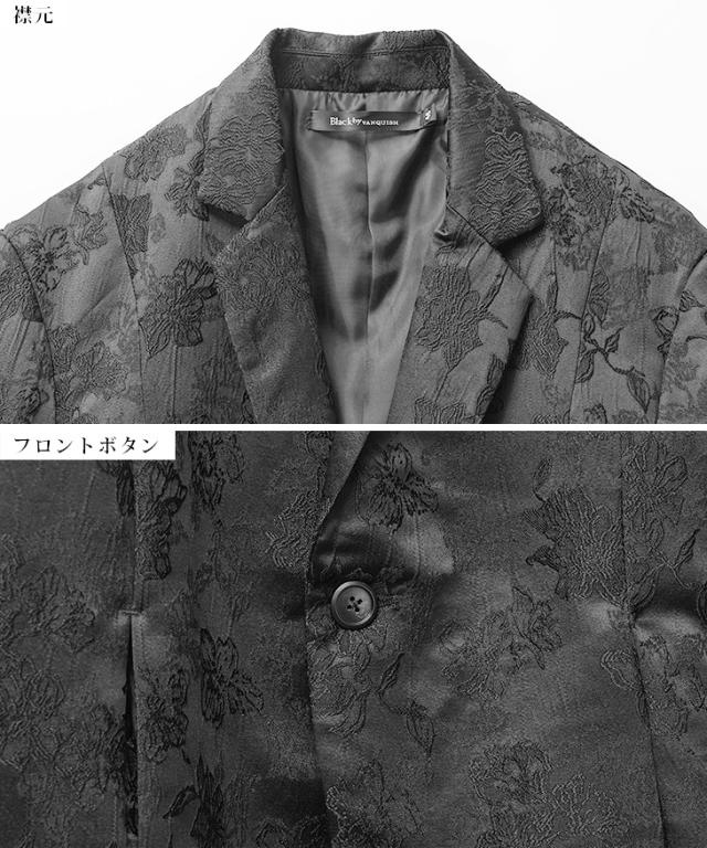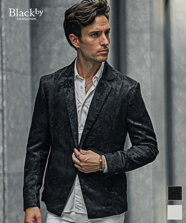 ジャケット メンズ 総柄 テーラードジャケット メンズ 新作 1ボタン ジャガード 花柄 ブラック ホワイト テーラード ジャケット メンズ シングルボタン Black by VANQUISH ブラックバイヴァンキッシュ