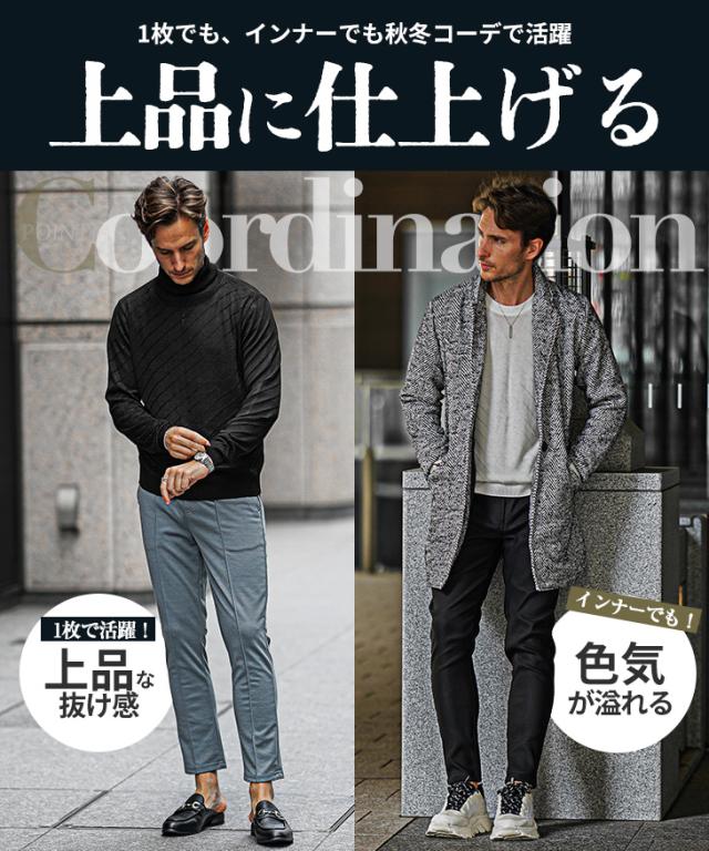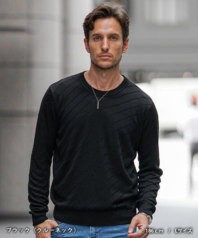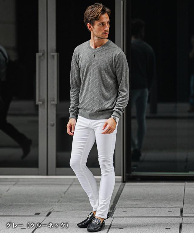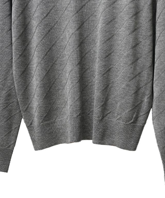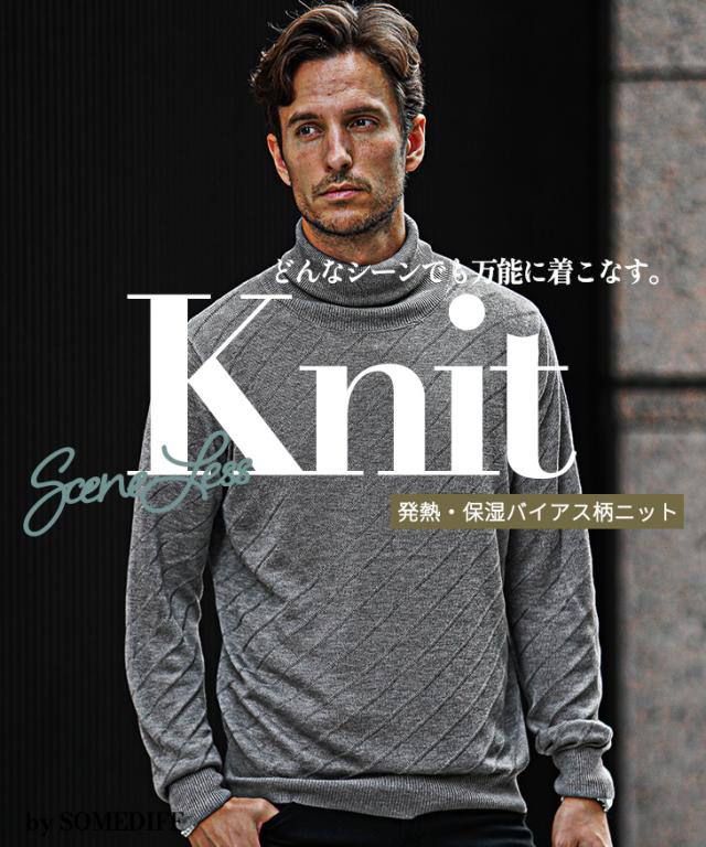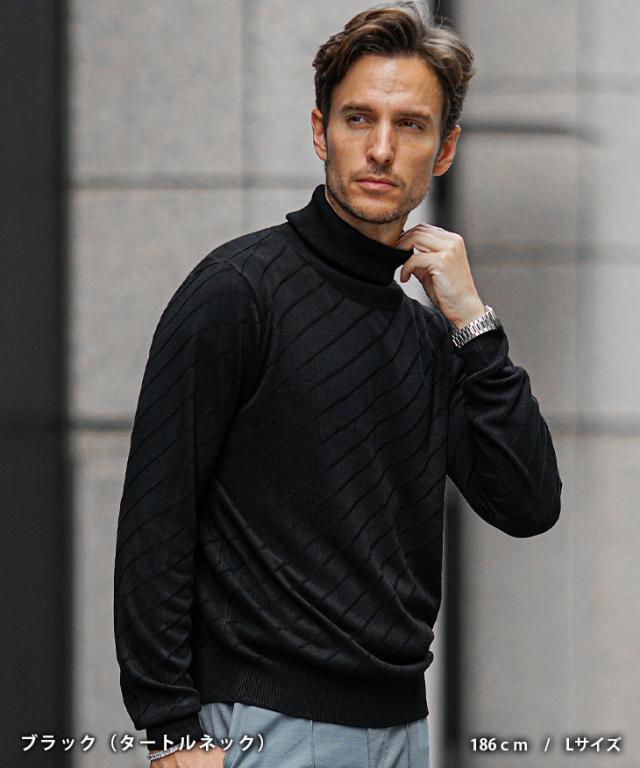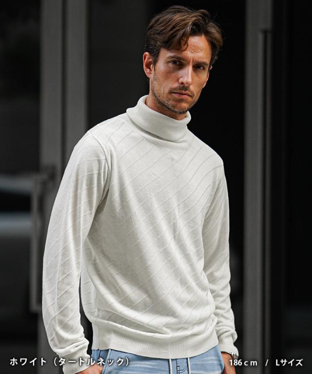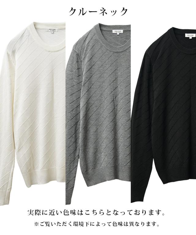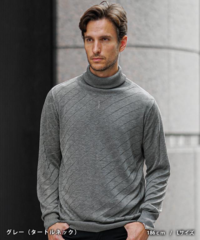 華麗にコーデを彩る2タイプ『発熱・保温バイアス柄ニット』【発熱・保温バイアス柄ニット】■Design/デザイン寒い季節に頼れる機能性と上品なデザインを兼ね備えた、バイアス柄ニット。体温を逃がしにくく、着るだけで暖かい心地よさを感じられる一枚。繊細なバイアス柄がシンプルながらも存在感を放ち、大人のメンズトップスとして幅広いシーンで活躍。デザインは定番のクルーネックと、首元までしっかり守ってくれるタートルネックの2タイプをご用意。カラーは落ち着きのあるグレー、シャープなブラック、清潔感のあるホワイト。どれも合わせやすく、ビジネスからカジュアルまで幅広くコーディネート可能。冬の装いを格上げする、機能性とデザイン性を兼ね備えた長袖ニットトップス。