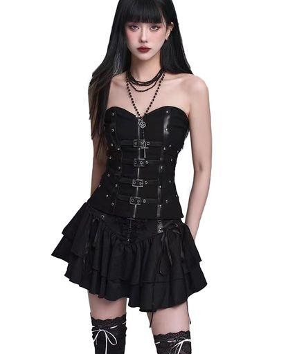 [KALAOK] ロリータ JSK レザー スカート 2点セット ゴスロリ かっこいい ダンス衣装 応援 グループ 学園祭 E L