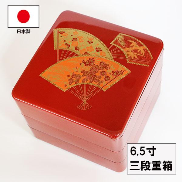 重箱 3段 6.5寸 日本製 扇面松竹梅 朱 越前漆器 三段 国産 お正月 運動会 お花見 おしゃれ 迎春 割れない 耐久 業務用漆器