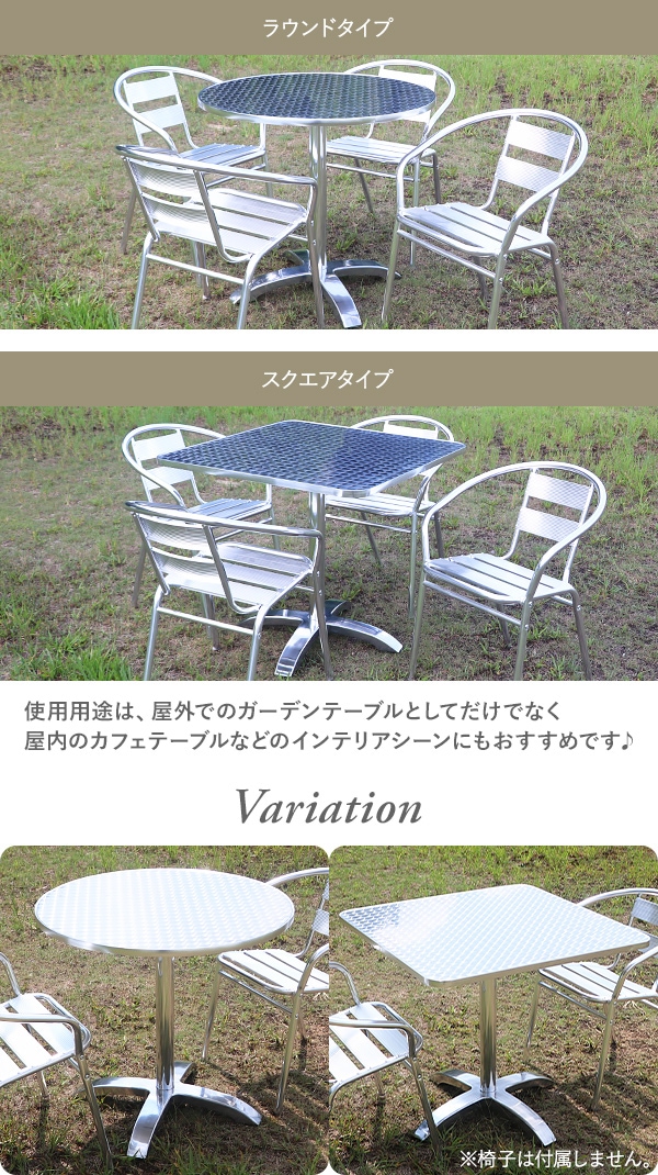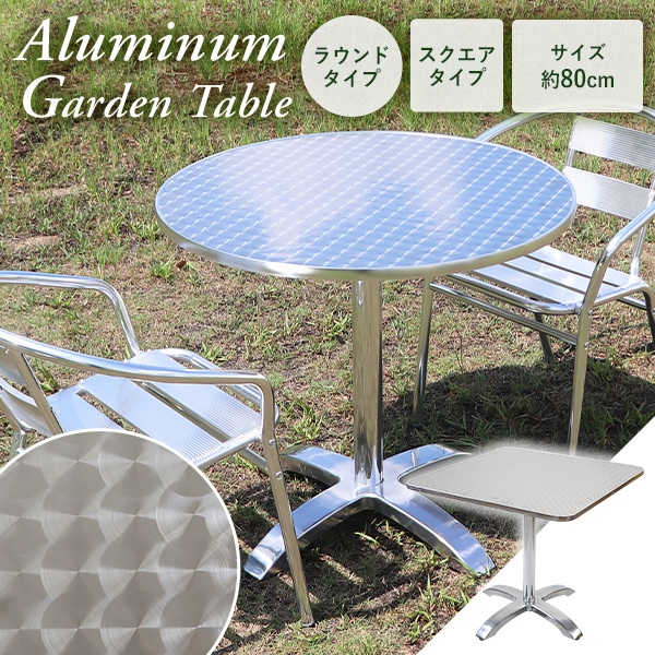 アルミガーデンテーブル アルミテーブル UVカット 天板サイズ約80cm ラウンドテーブル スクエアテーブル 軽量 頑丈 コンパクトサイズ シンプルデザイン お手入れカンタン 簡単組立 ガーデン テーブル ステンレス アウトドア 屋外 丸 円形 角 almgtablel18