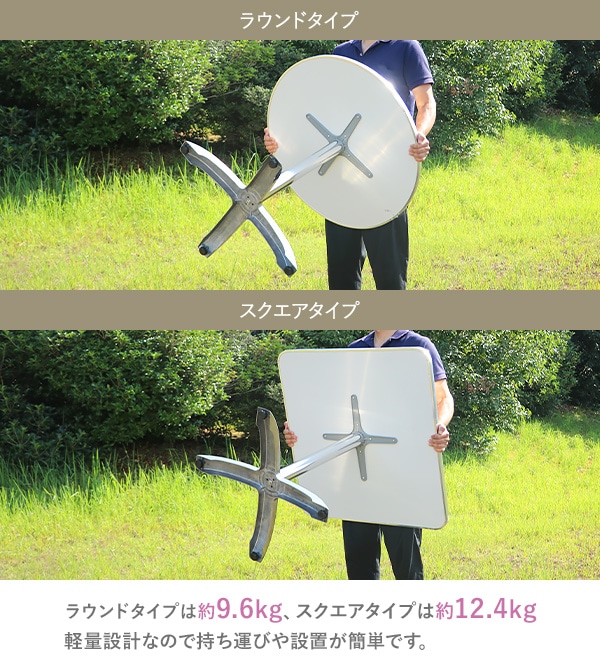 | 重量 | ラウンドテーブル:約9.6kg スクエアテーブル:約12.4kg |