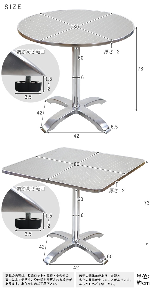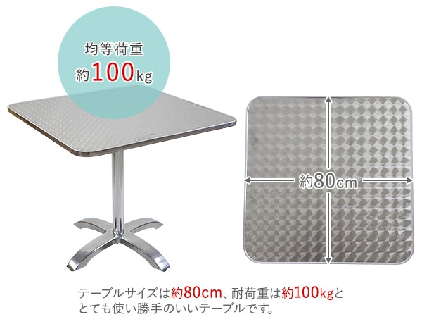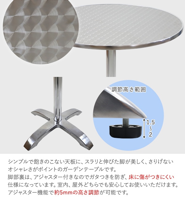 デザインテーブル ガーデンテーブル 角 円 ガーデン アウトドア アウトドアテーブル 耐荷重約100kg ステンレステーブル 防錆 インテリア ガーデンファニチャー アジャスター 屋内