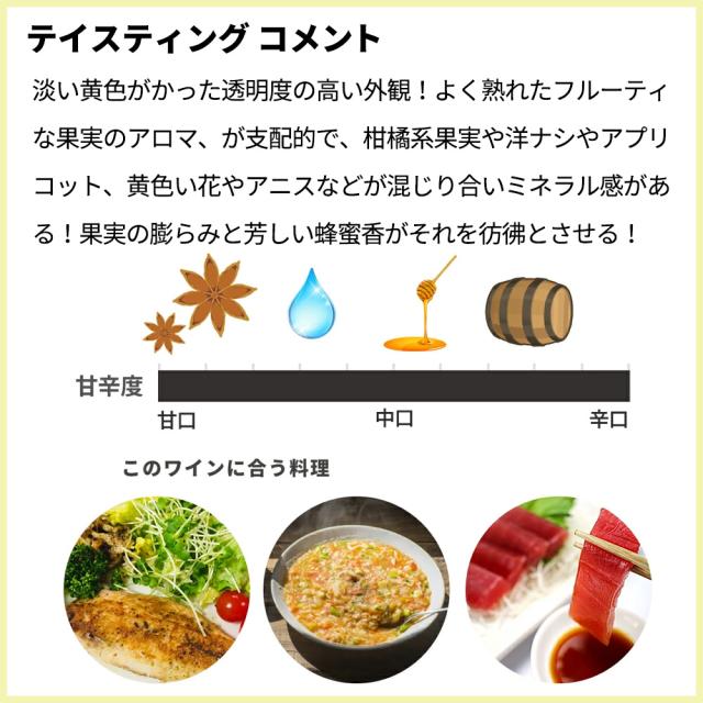 ![]() ■ぶどう品種:シャルドネ100% ■発酵・熟成:2/3がオーク樽で12ヶ月樽熟成、1/3がステンレス熟成 造り手は、モンテリ本拠地で以前は「コント・ラフォン」の契約農家であった人気ドメーヌ!ポール・ガローデの究極スーパー・ブルゴーニュ・シャルドネ!なんとコント・ラフォンにAOCブルがないため、これがコント・ラフォンのAOCブルゴーニュと考える人が多いとか…! ムルソー村の畑で採れた完熟したシャルドネを1年以上かけて澱と共に熟成させて作るこの白ワインは、淡い黄色がかった透明度の高い外観!よく熟れたフルーティな果実のアロマ、が支配的で、柑橘系果実や洋ナシやアプリコット、黄色い花やアニスなどが混じり合いミネラル感がある! 果実の膨らみと芳しい蜂蜜香がそれを彷彿とさせる! ピュアな酸味が調和し、穏やかな樽香もバランスもよく特筆に値する濃縮感とムルソーのテロワールに由来するクリアで緻密なミネラル感を伴う大人気コクあり辛口白ワイン! |