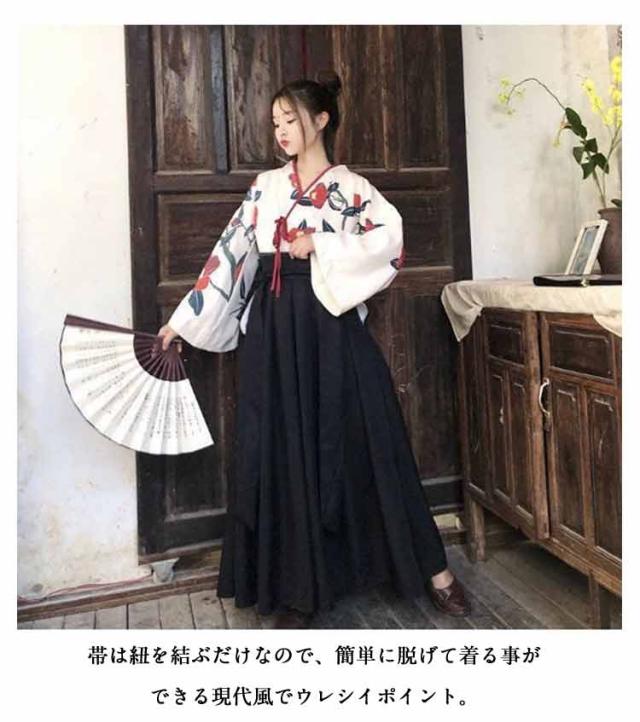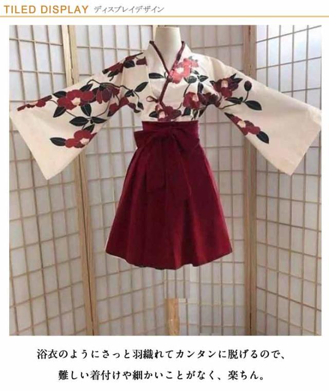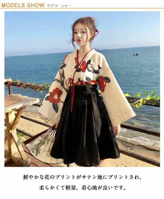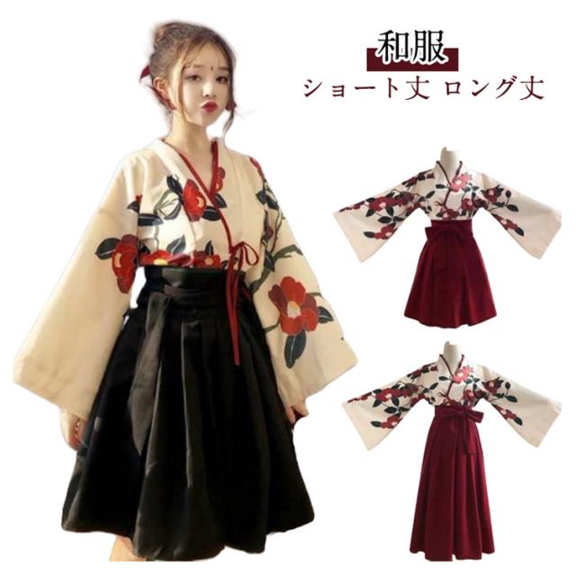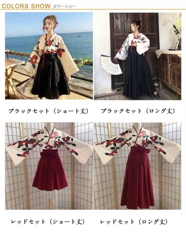 和服 コスプレ 祭り 大正ロマン 着物 花柄 卒業式 和服 袴 レディースー 可愛い 大人用 昭和 女装 浴衣 少女風 レトロ 椿柄 ショート丈 ロング丈 学園祭 和装 赤 黒 文化祭 演劇 舞台 メイド ロリィタ 巫女 SX-3XL 大きいサイズ
