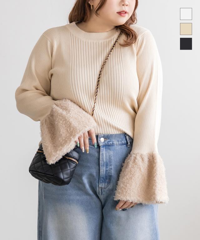 大きいサイズ/レディース/LL/3L/4L/CLETTEオリジナル袖ボアボトルネックニット