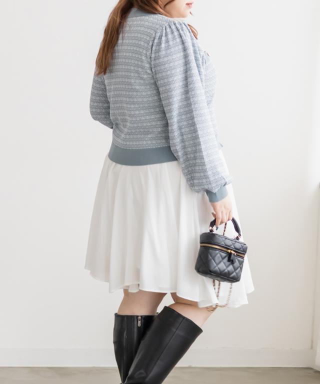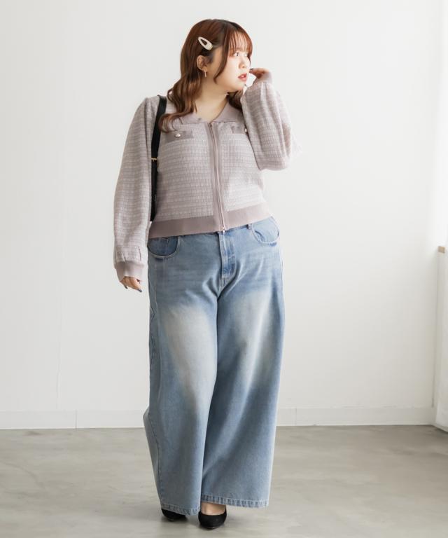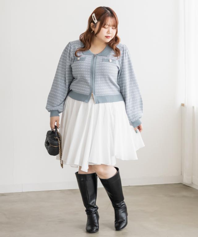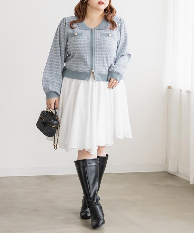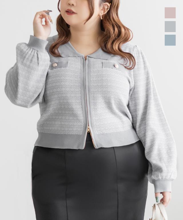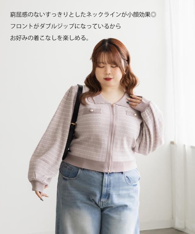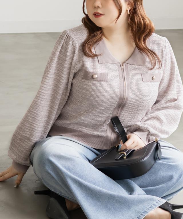 | 3Lサイズを着用してちょうどいいサイズ感でした。ツイード風の高見えするニット素材になっているので、上品に着こなすことができます◎ツイードっぽく見えるけど薄手で軽いニットなので、重く無くラクチンに着られました!長いシーズン着回しできるポイントでもあります!凹凸のある素材感なのでボディラインも拾いづらいです!程よくゆとりがありコンパクトな印象に着られるシルエットでアイテムなら安心感して着ることができます。配色とゴールドのボタンがアクセントになって、全体的にすっきりとフェミニンに着こなせます!ダブルジップで空き具合を調整できて、抜け感もプラスしてくれます!トレンド感もたっぷりな襟付きカーデは今季ほしい一押しアイテムです♪ |