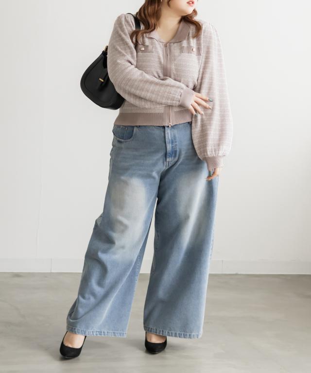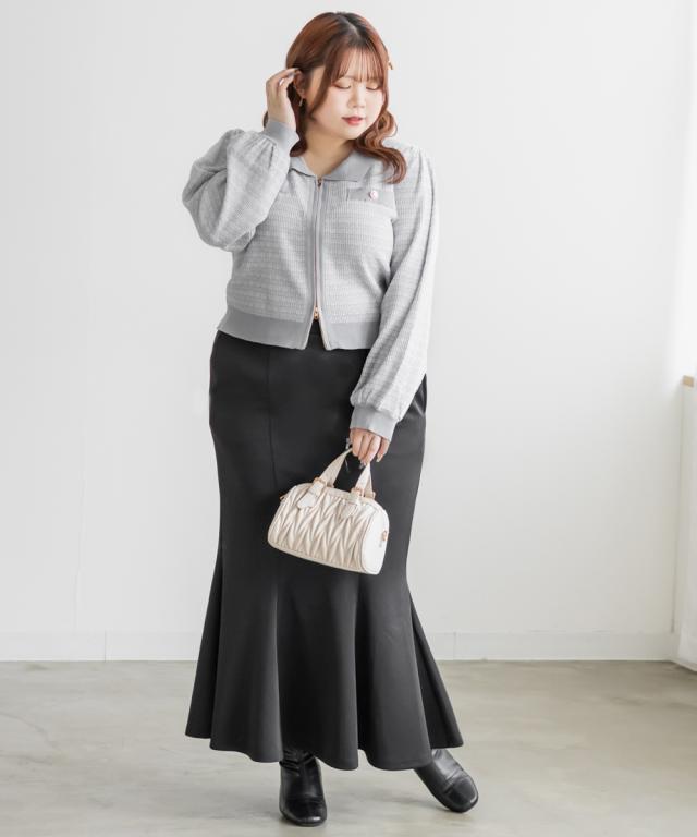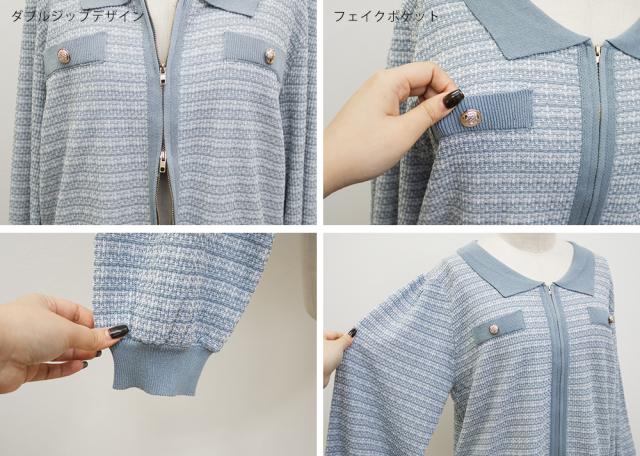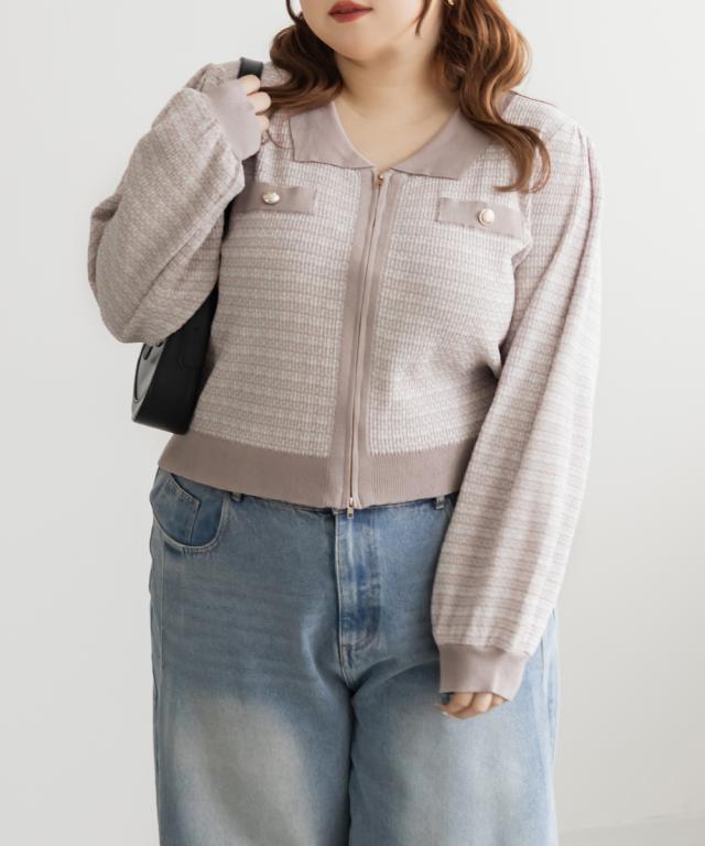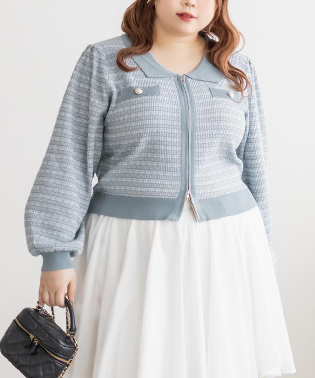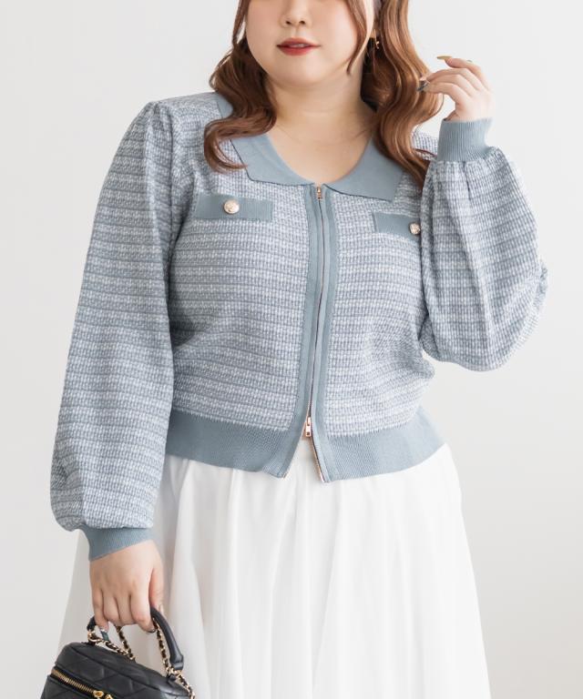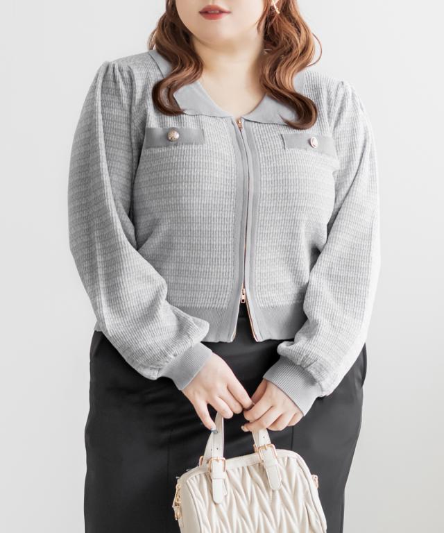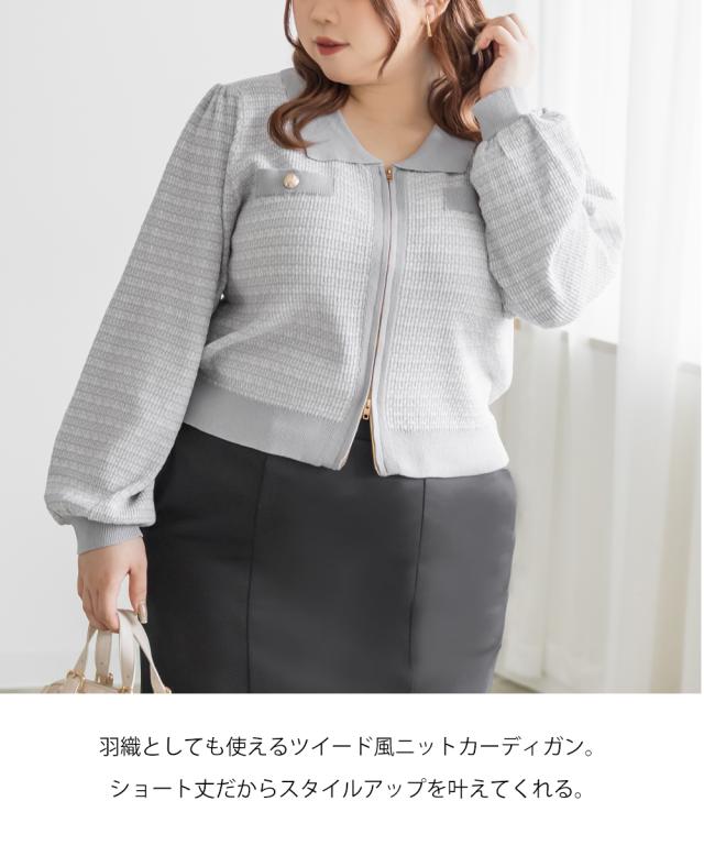 大きいサイズ/レディース/LL/3L/4L/CLETTEオリジナルツイード風ジップニットカーディガン