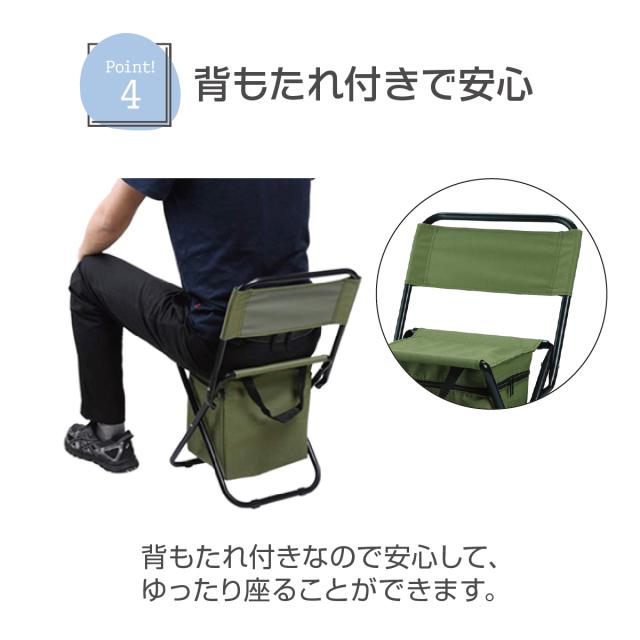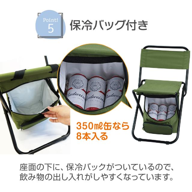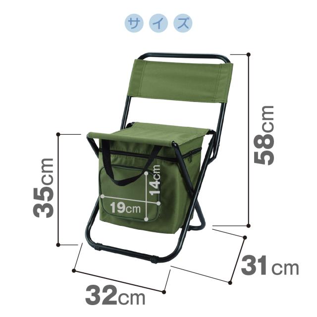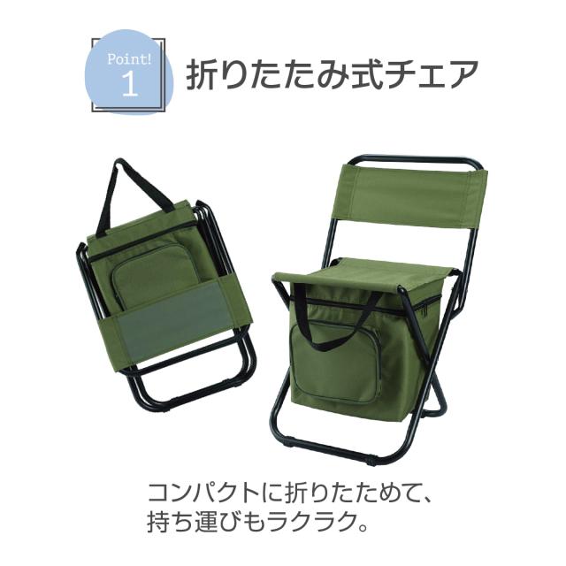 保冷バッグ付きチェア|折りたたみ式 背もたれ付き 耐荷重100kg アウトドアチェア