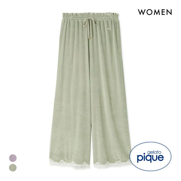 ジェラートピケ レディース MUCHA ベロア×レースロングパンツ ジェラピケ ミュシャ パジャマ ルームウェア gelato pique