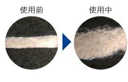 ワックス仕様で歯間にスムーズに入り、だ液(水分)に触れるとスポンジ状に膨らんで、歯ぐきにやさしく、効果的に歯間の歯垢を除去。
