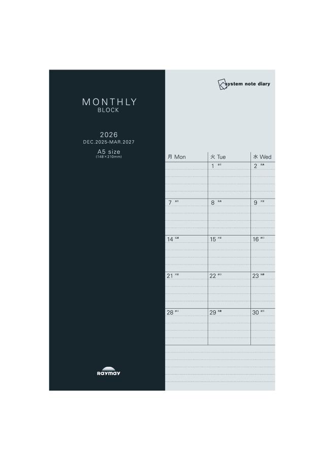 レイメイ藤井 26システムノートダイアリー ブロックA5 RFDR2673 マンスリー 月間 ブロック 2025年12月〜2027年3月