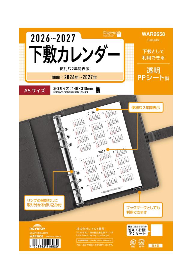 レイメイ藤井 26キーワード A5下敷カレンダー WAR2658 リフィル イヤー 年間 ブロック 2026年〜2027年