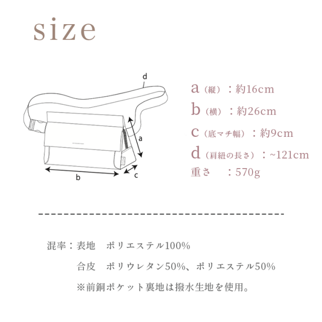 【素材】表地:ポリエステル100% 合皮:ポリウレタン50%、ポリエステル50%
