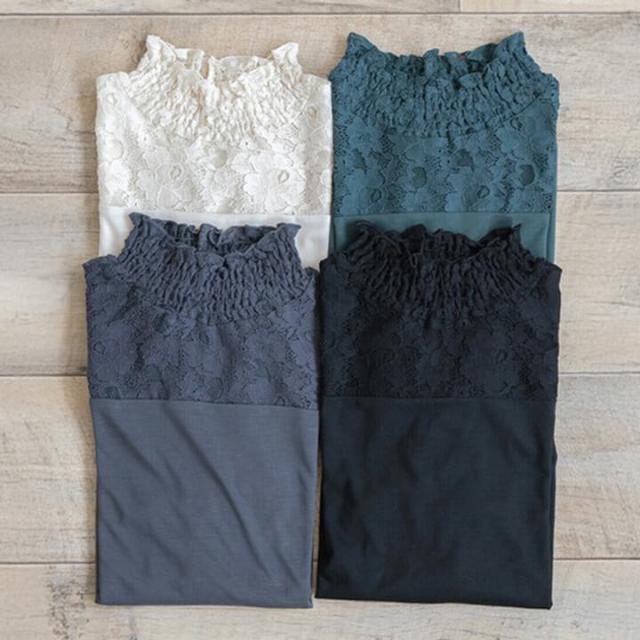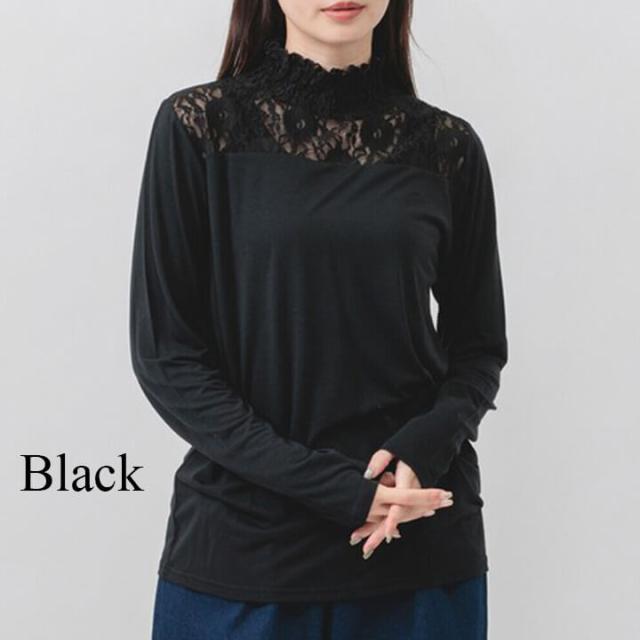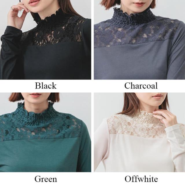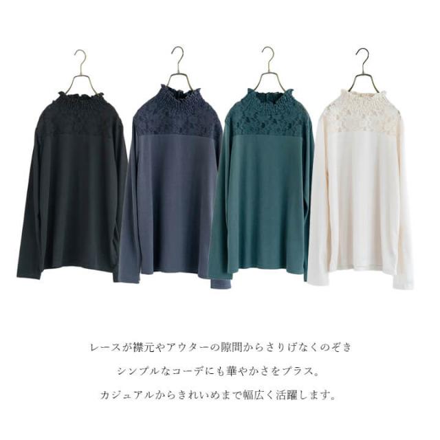 カジュアルトップス トップス レディース カジュアル レース 綿100% 春 秋 冬 女性 可愛い ゆったり 快適 デイリー コーデ 大人 上品 シンプル インナー ラフ きれいめ 二の腕カバー 長袖 抜け感 重ね着 レイヤード 着回し 天竺素材 ポリエステル レーヨン 20代 30代 40代 50代 10代 60代 ブラック チャコール グリーン アイボリー モーヴピンク イエロー 黒 灰色 黒灰 緑 肌色 黄白色 桃色 紫 白 F フリーサイズ cic4378b