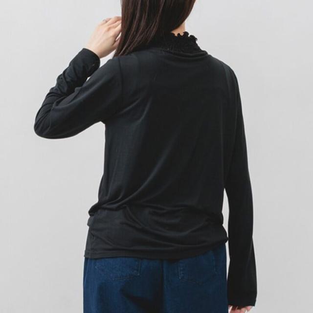 薄手でも透けにくく、重ねてもごわつかず、インナー使いにぴったりの着回し幅が広がるアイテムです。