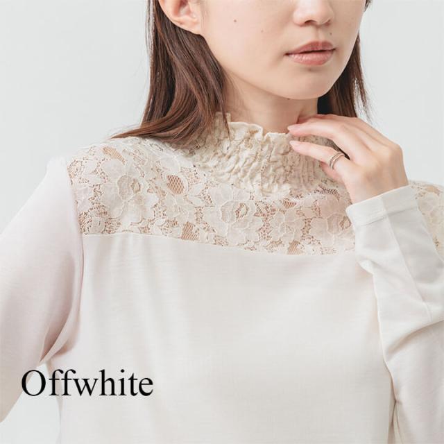 繊細な綿レースで切り替えたデザインが目を引くカジュアルトップス。