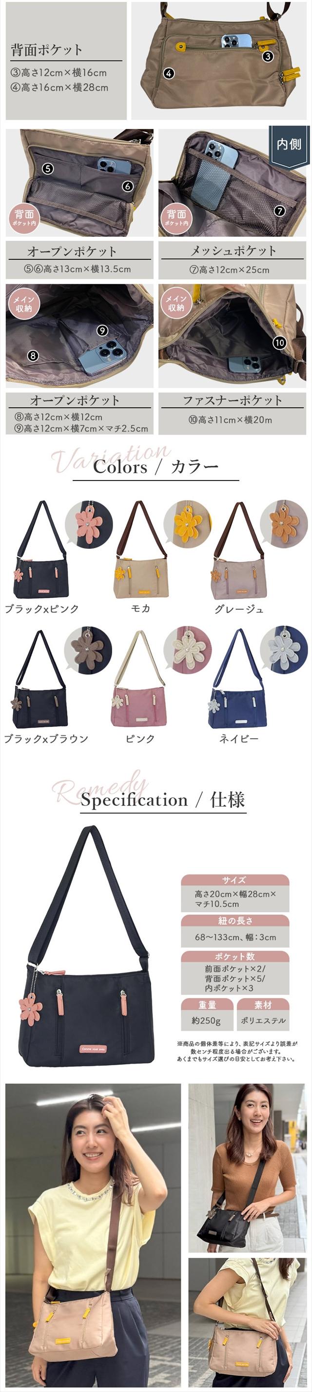 送料無料 チャーム付き ポケット多め ショルダーバッグ