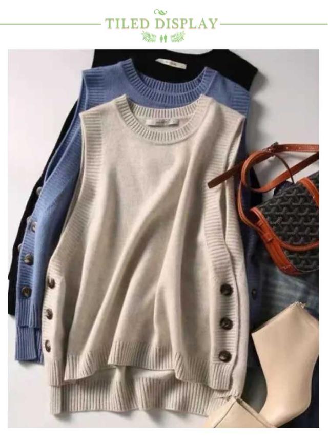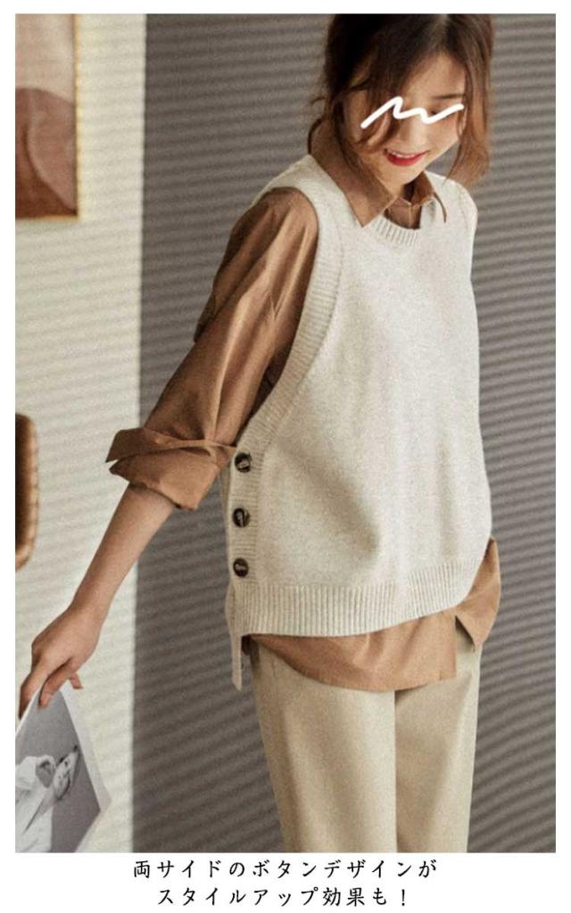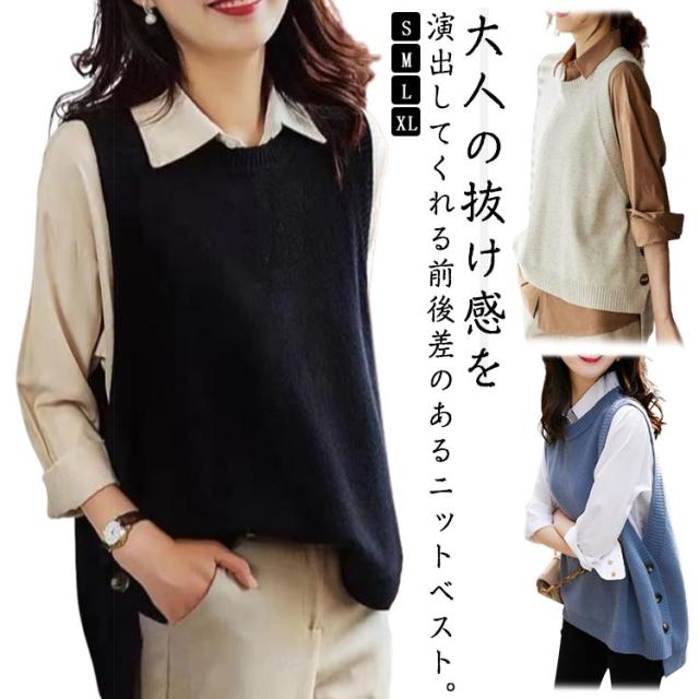 ニットベスト ベスト レディース ニットベスト ニット 秋 春 トップス ニットセーター タンクトップ ニットタンクトップ レイヤード 重ね着 サイドボタン おしゃれ 編みセーター ニットベスト ニットタンクトップ ストレッチ