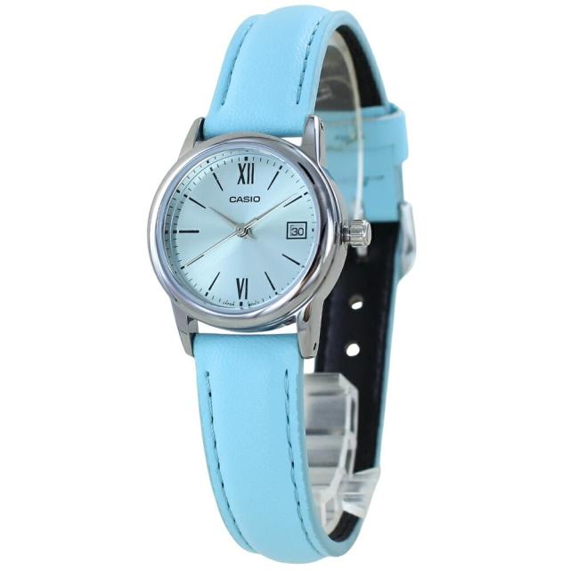 カシオ CASIO 腕時計 レディース 収納ケース付き チープカシオ チプカシ シンプル 軽い レザー 革ベルト スカイブルー 日付 プレゼント ギフト 時計 女性用 誕生日 記念日 日本未発売 海外モデル LTP-V002L-2B3 成人 卒業 入学