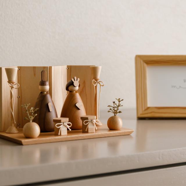 雛人形 おしゃれ モダン 木製 コンパクト 親王飾り prefer MOKU 木製雛人形 mitomi 平飾り お雛様 小さい ひな人形 おひなさま おひな様