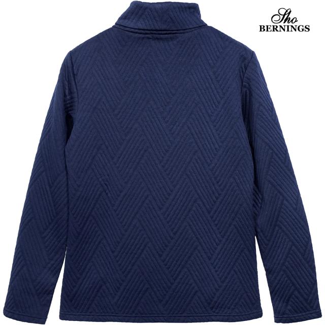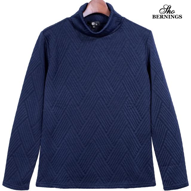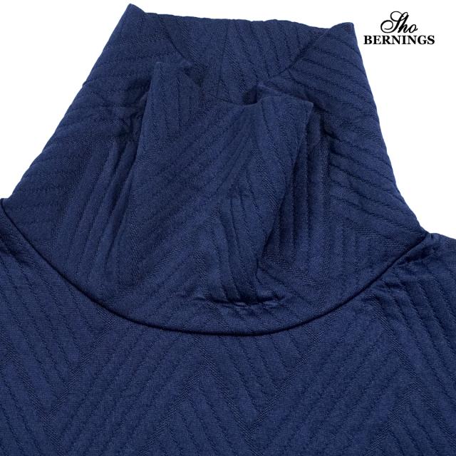 タートルネックシャツ バイアス柄 キルティング メンズ 長袖(ネイビー紺) 363453