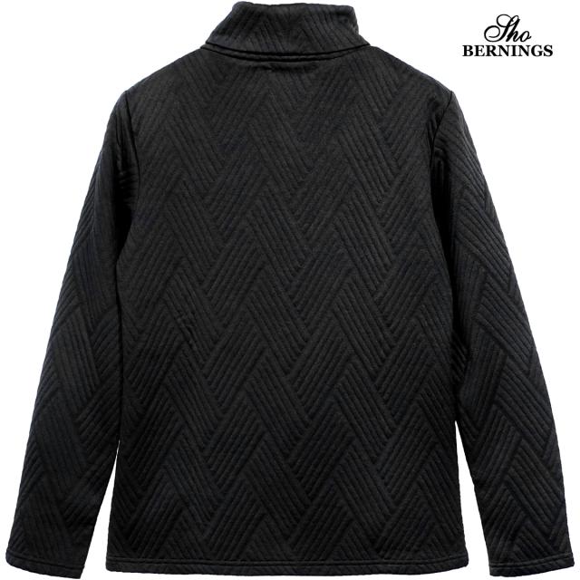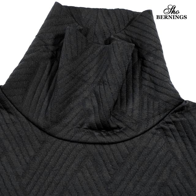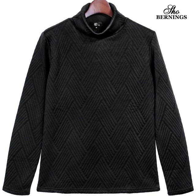 タートルネックシャツ バイアス柄 キルティング メンズ 長袖(ブラック黒) 363453