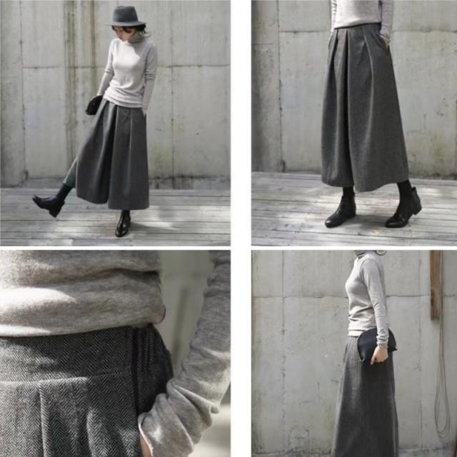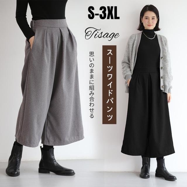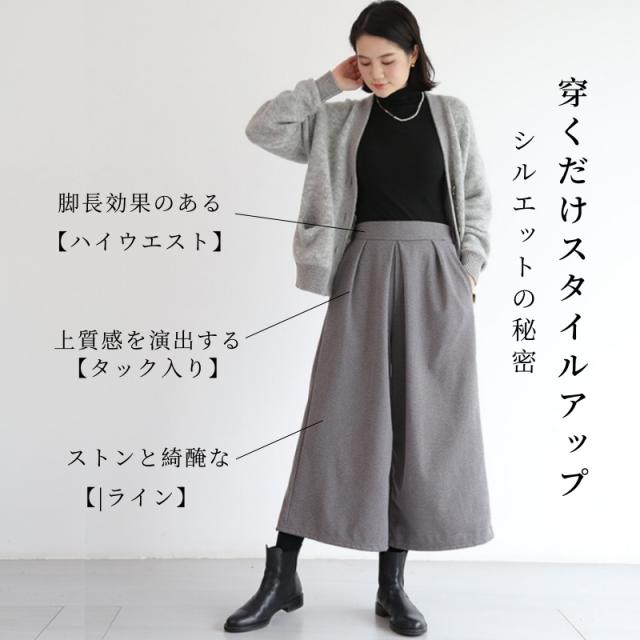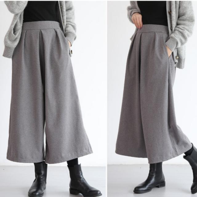 ワイドパンツ 秋 冬 レディース ボトムス ガウチョパンツ ゆったり フレアパンツ 9分丈 無地 体系カバー 秋新作 コーデ あったか 春 秋 美脚 ズボン