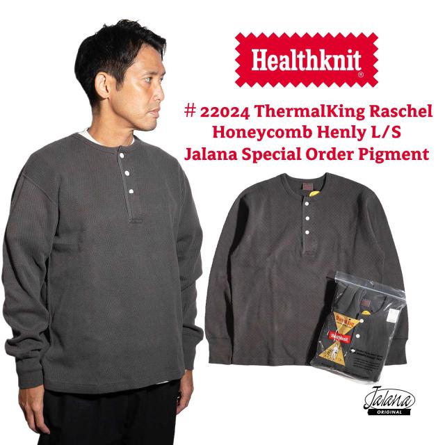 ヘルスニット Healthknit 22024 サーマルキング ラッセルハニカム ヘンリーネック 長袖Tシャツ Jalana別注ピグメントダイ | メンズ M L XL ハニカムサーマル