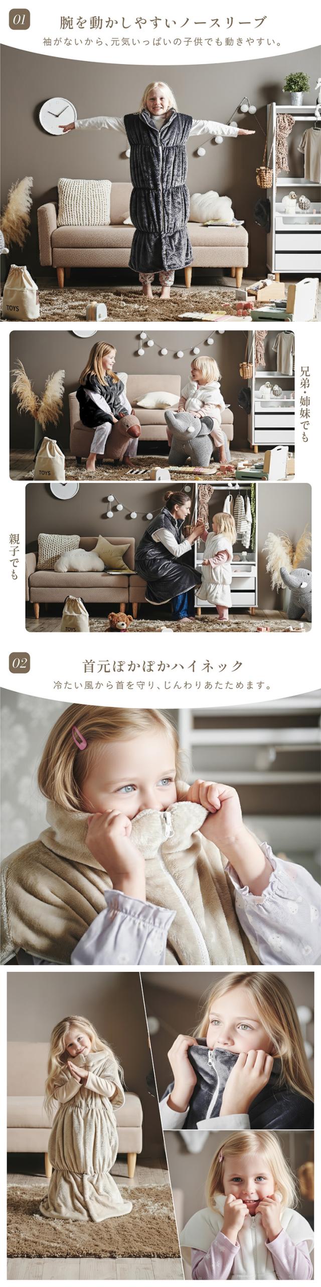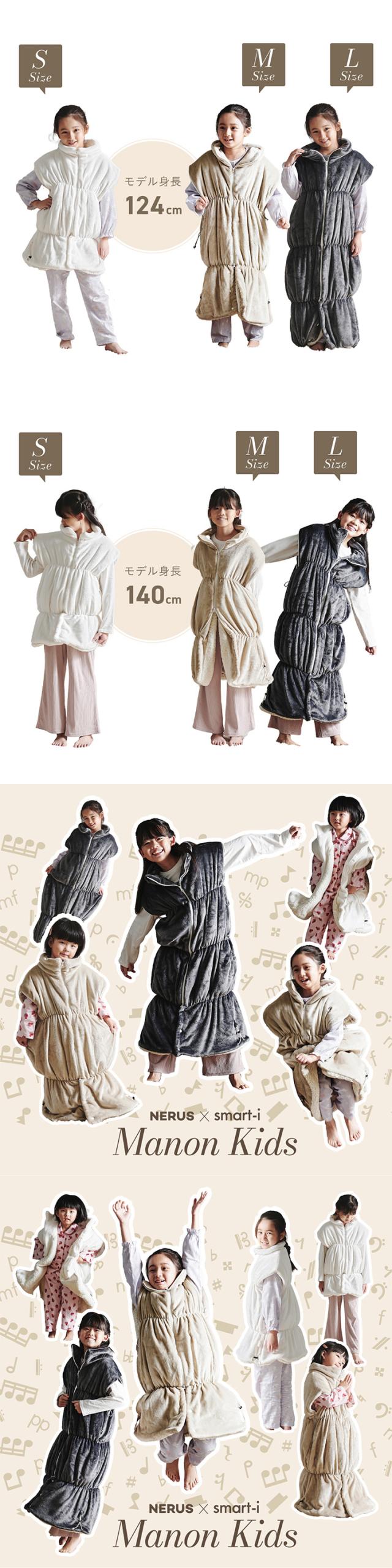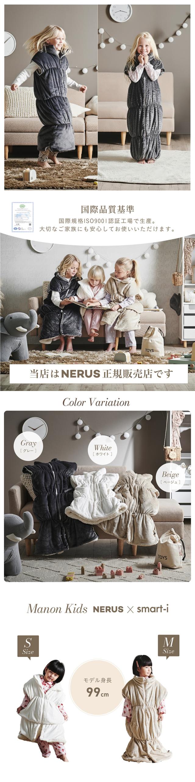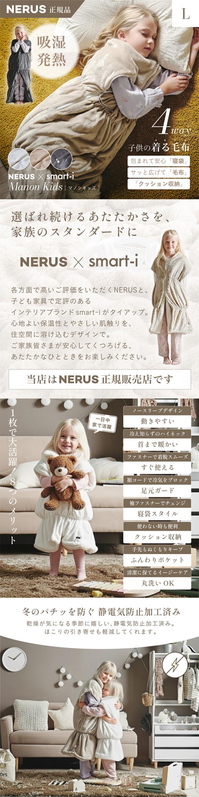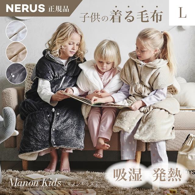 【NERUS 正規品 ネルス】寝具 着る毛布 子供用 吸湿発熱 4way Manon Kids(マノンキッズ) Lサイズ 3色対応 おしゃれ 静電気防止 ノースリーブ ハイネック ファスナー式 寝袋スタイル クッション兼用 ポケット付き 洗える 秋冬用 防災
