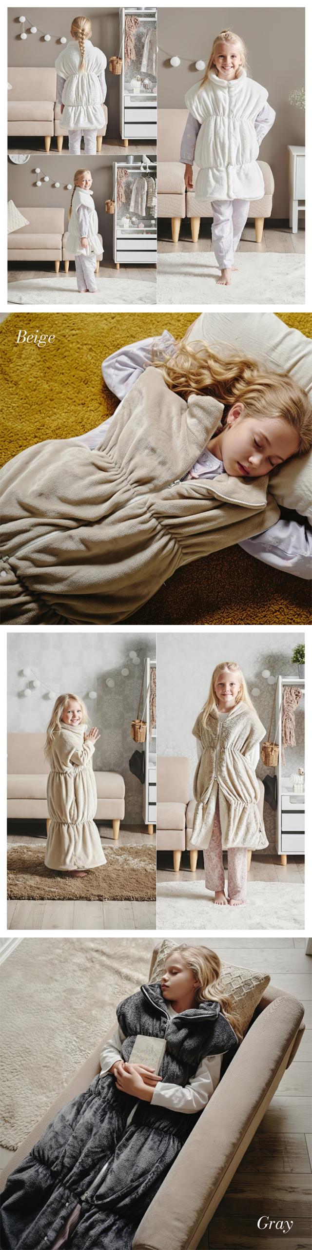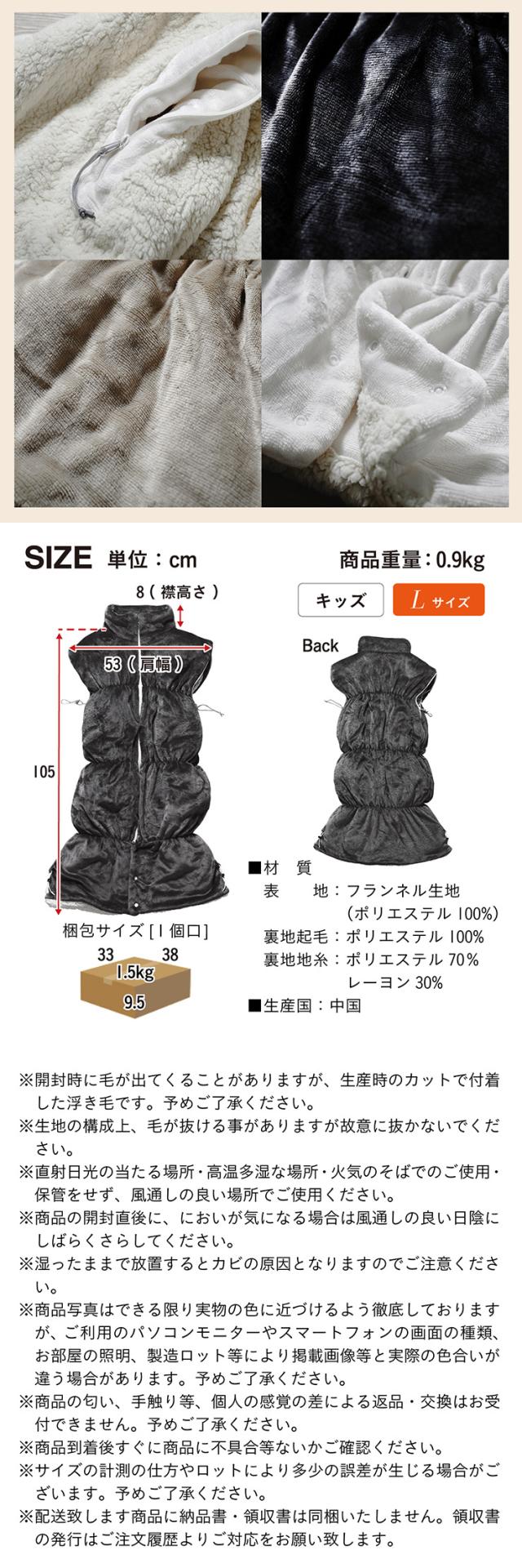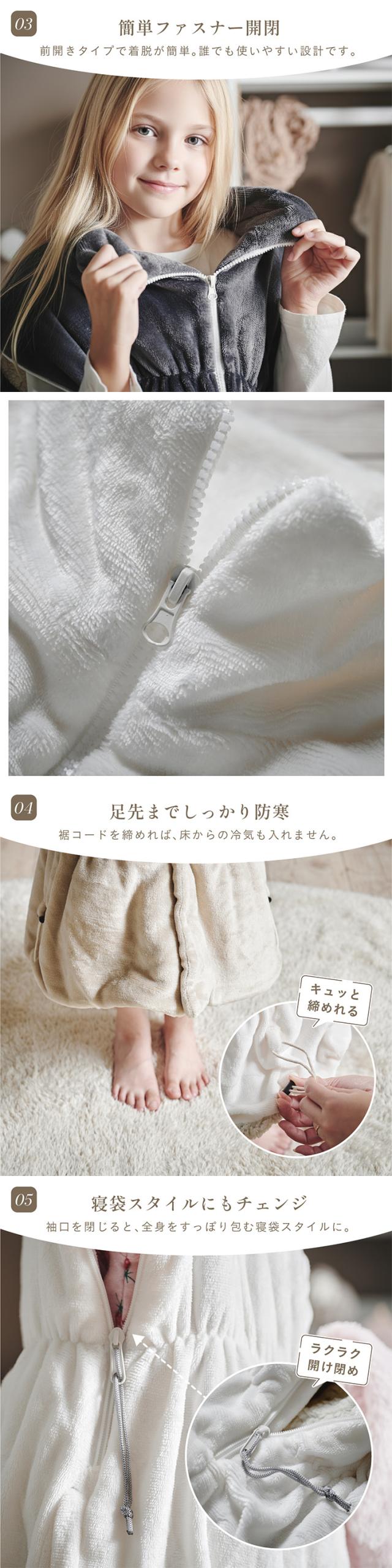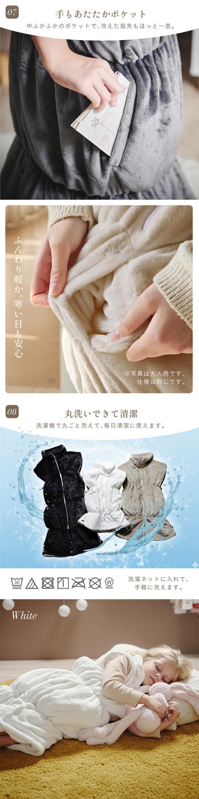【NERUS 正規品 ネルス】寝具 着る毛布 子供用 吸湿発熱 4way Manon Kids(マノンキッズ) Lサイズ 3色対応 おしゃれ 静電気防止 ノースリーブ ハイネック ファスナー式 寝袋スタイル クッション兼用 ポケット付き 洗える 秋冬用 防災