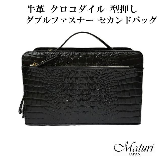 | セカンドバッグ 牛革 クロコダイル 型押し ダブルファスナー 黒 Maturi マトゥーリ JAPAN MT-41 BLACK | |