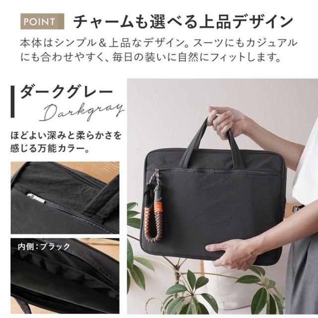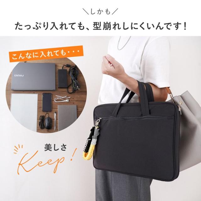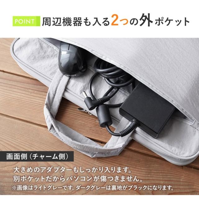 ・PCメーカーや機種によってサイズが異なりますので、必ずパソコンのサイズを確認の上ご購入ください。またPCサイズによってPCを押さえる平ゴムの使用感は変わる場合がございます。 表地には撥水加工を施していますが、裏地には加工をしておらず、撥水効果は使用とともに徐々に薄れていきます。防水仕様ではありませんので、強い雨などにはご注意ください。 ・洗濯やドライクリーニング、アイロンがけは、型崩れや変色の原因となりますのでお避けください。 ・緩衝材を入れておりますが、電子機器などを収納する際は十分ご注意ください。 ・お使いのパソコンやスマートフォンの画面により、実際の色味と若干異なる場合があります。 |