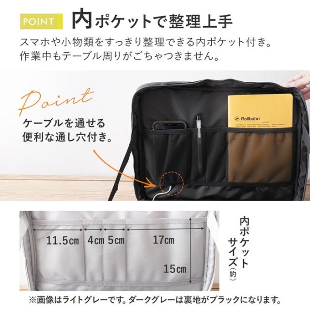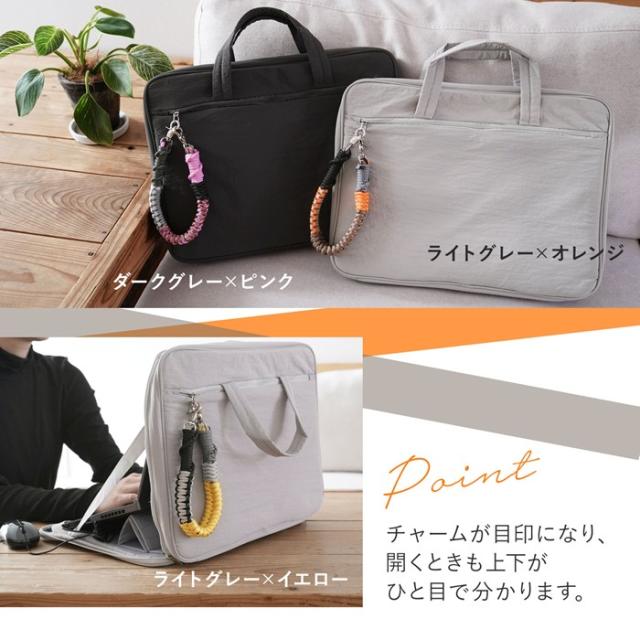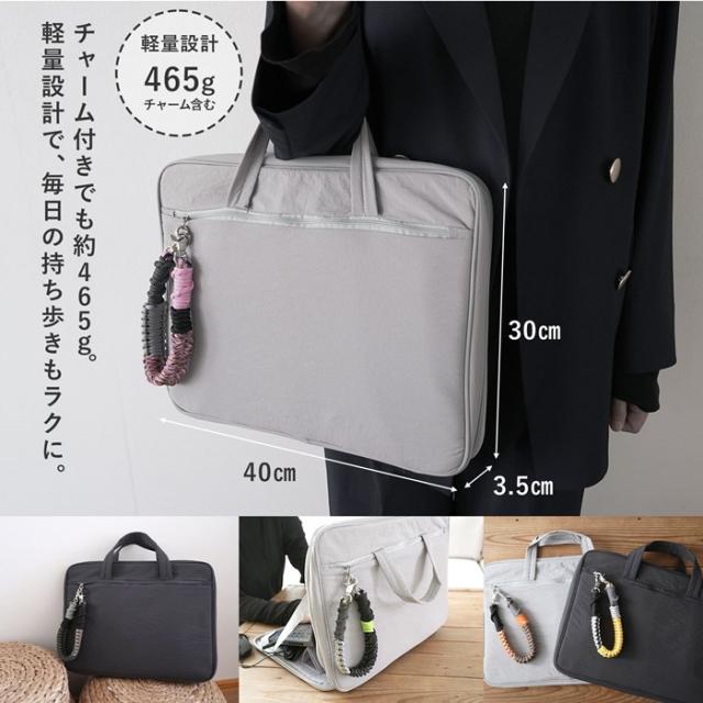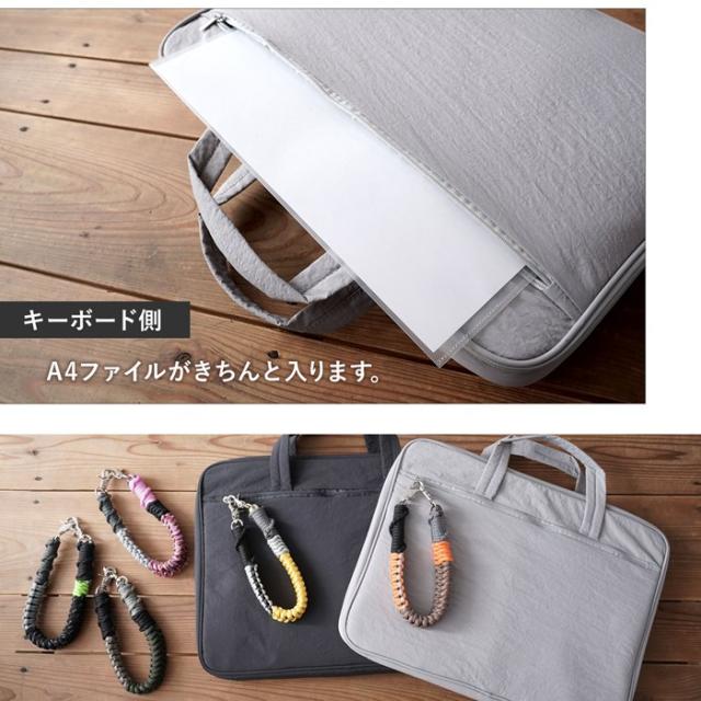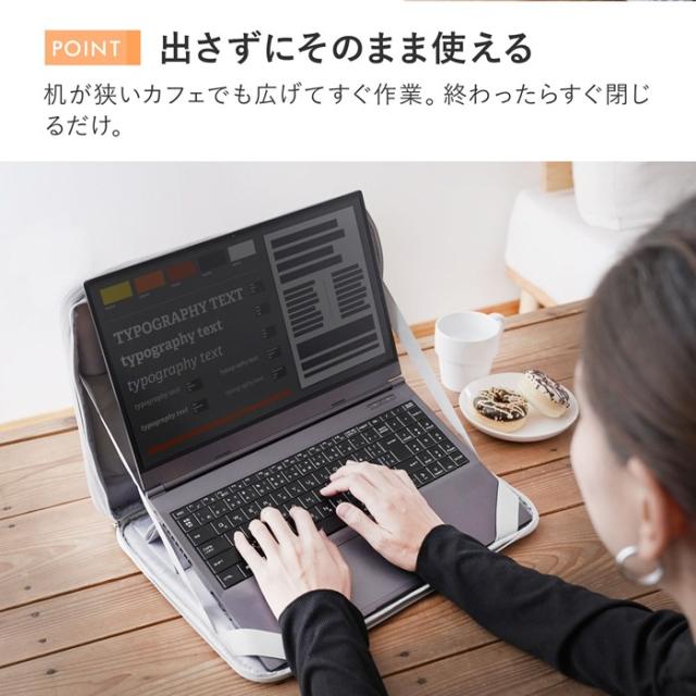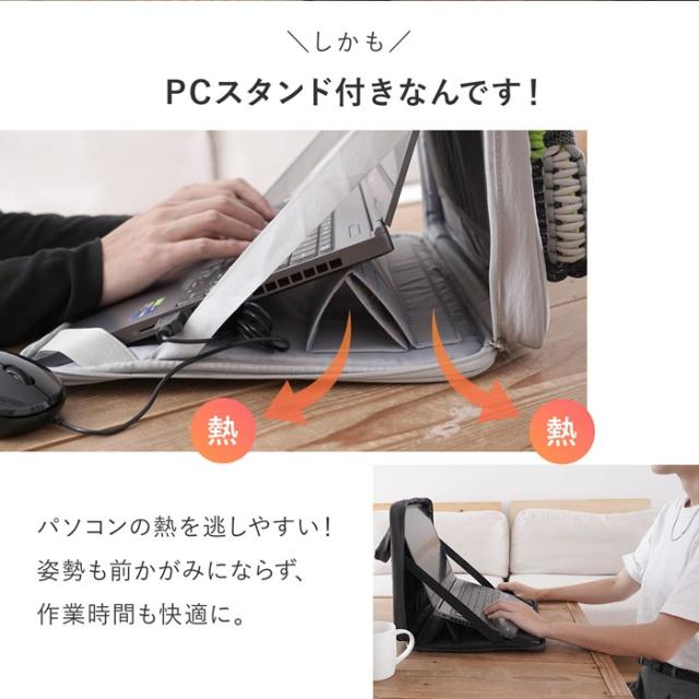 | 15.6〜16inPC対応 動画編集やクリエイティブ作業に欠かせない、15.6〜16インチの大きめPCに対応。クッション生地でパソコンを守ります 出さずにそのまま 机が狭いカフェでも広げてすぐ作業。終わったらすぐ閉じるだけ。 \しかも/PCスタンド付きなんです! パソコンの熱を逃しやすい!姿勢も前かがみにならず、作業時間も快適に。 内ポケットで整理上手 スマホや小物類をすっきり整理できる内ポケット付き。作業中もテーブル周りがごちゃつきません。スマホのケーブルを通せる便利な通し穴付き。 周辺機器も入る2つの外ポケット 画面側(チャーム側) 大きめのアダプターもしっかり入ります。 別ポケットだからパソコンが傷つきません。 キーボード側 A4ファイルがきちんと入ります。 \しかも/たっぷり入れても、型崩れしにくいんです! よくある質問 Q. 何インチのPCが入りますか? A. 15〜16インチのPCに対応しています。 内寸は約W38×H28×D3cmです。弊社で検証したところ、W38×H25×D2.8cmの厚みのある大きめノートパソコンも収納できました。 |