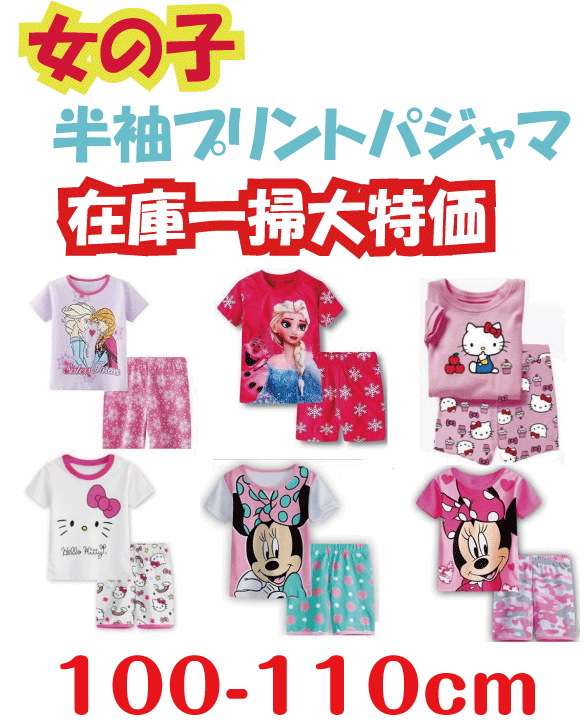 女の子 半袖パジャマ 在庫一掃大特価 ¥1,000 アナと雪の女王 キティちゃん ミニーマウス etc 100cm-110cm 綿100% 即日発送!
